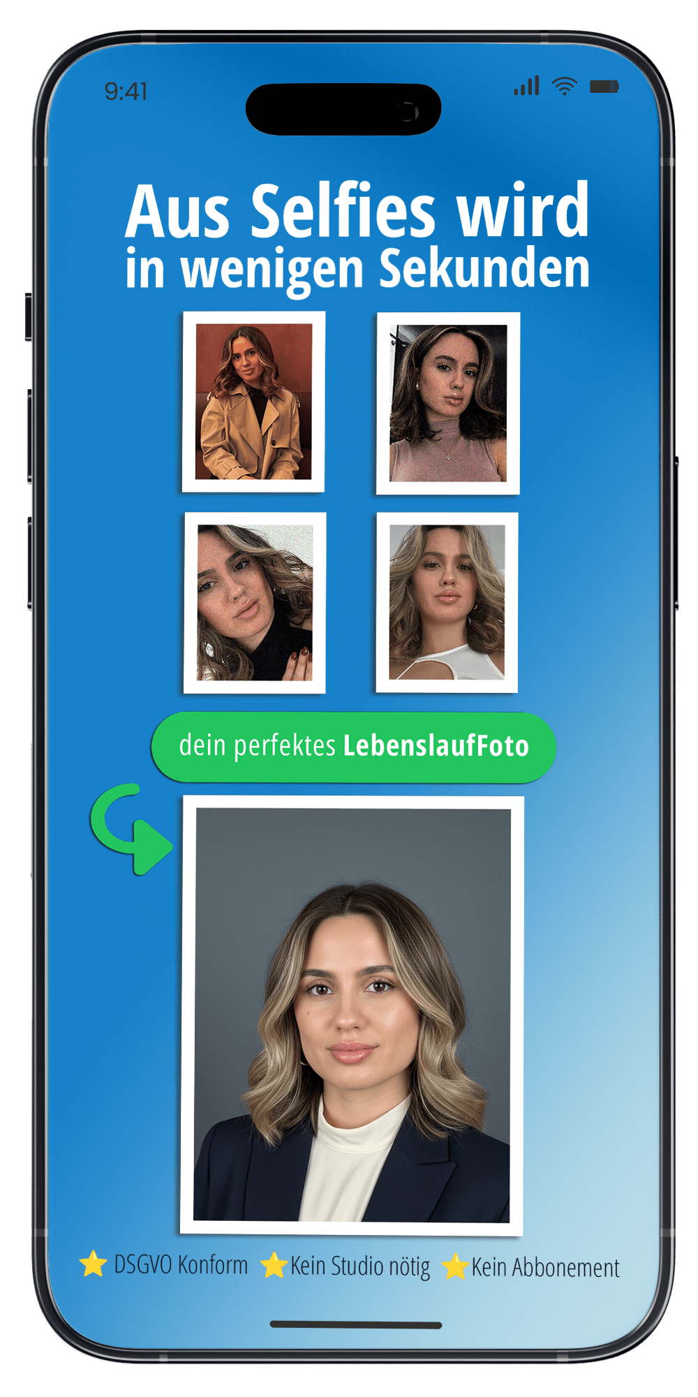 LebenslaufFoto verwandelt deine Selfies automatisch in professionelle Bewerbungsfotos.